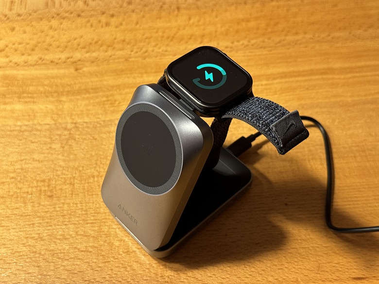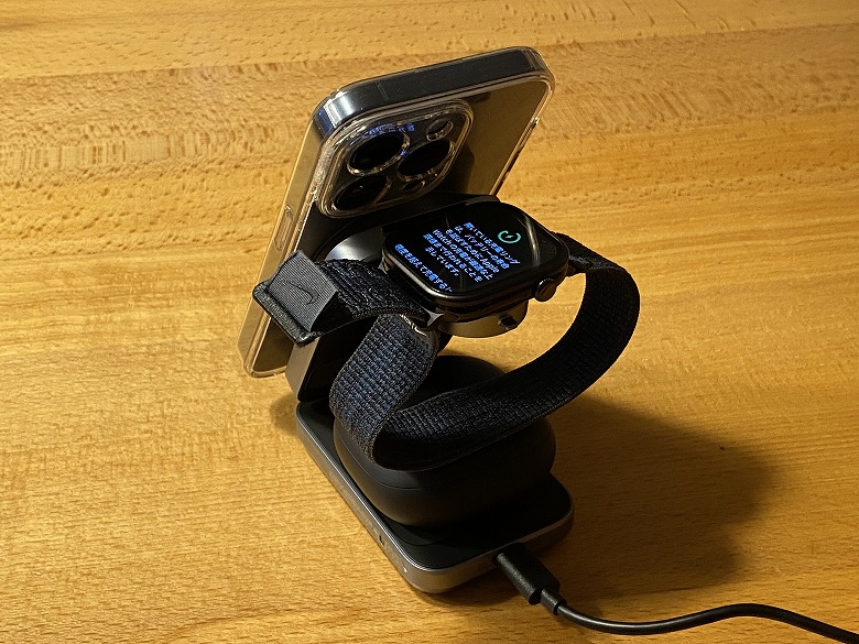 Apple Watchやワイヤレス充電を加えて最大3つのデバイスを同時に充電でき、Apple Watchは30分で約50%の急速充電に対応しています。