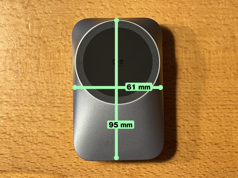Anker Prime Wireless Charging Station (3-in-1, MagGo, AirCool, Foldable)」のサイズは95 × 61 mmです。