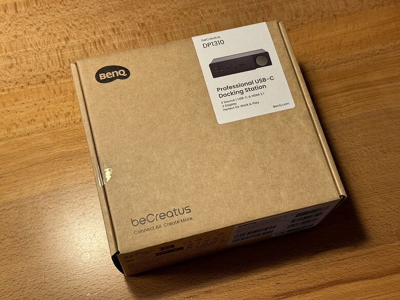 「BenQ beCreatus DP1310」の外箱は、ダンボール素材でシンプルなデザインです。