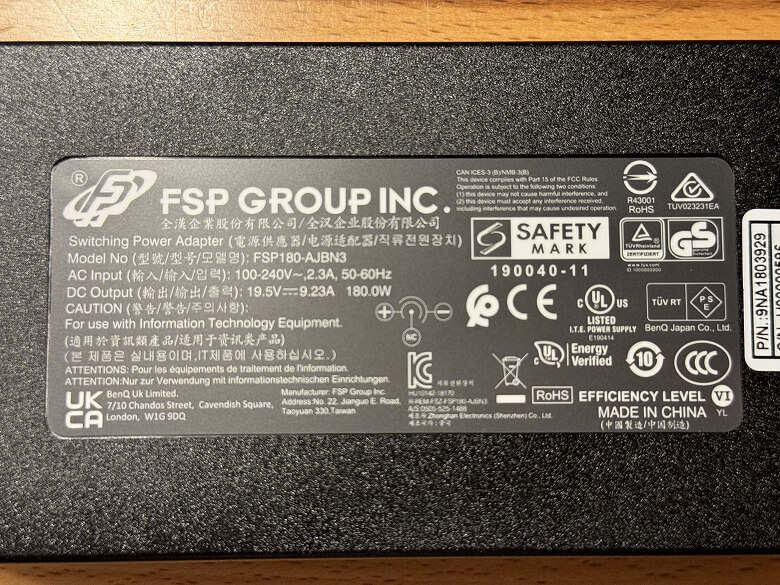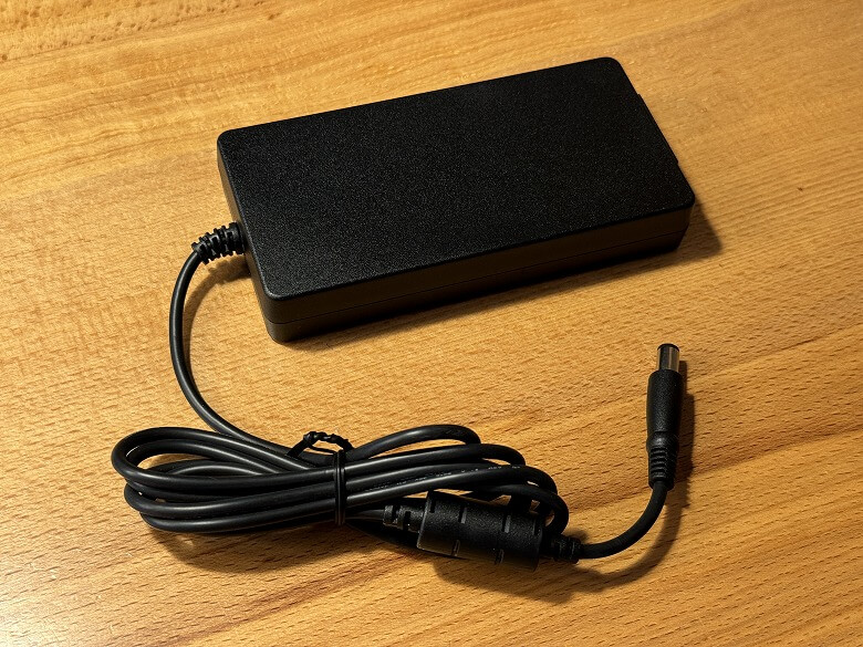 電源アダプターから伸びるケーブルの長さは約180 cmで、側面には仕様が記載されています。