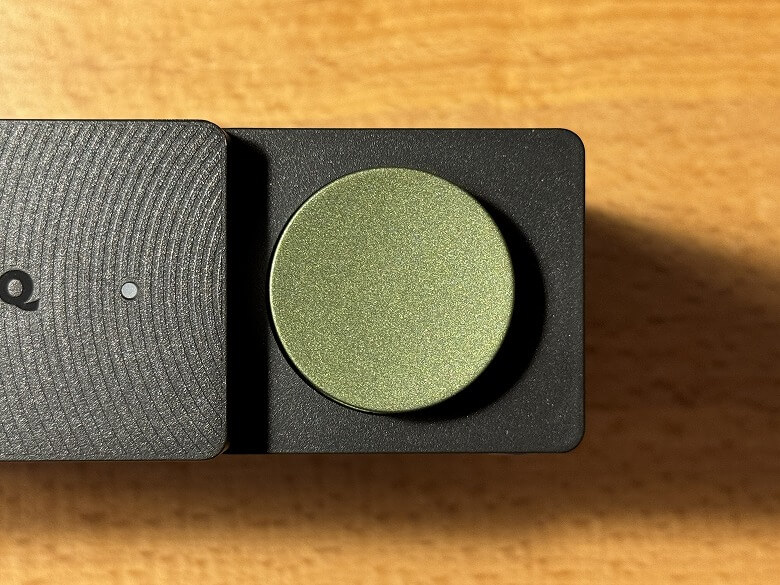 ボタンを3秒長押しすると電源ONになり、インジケーターが白く点灯します。