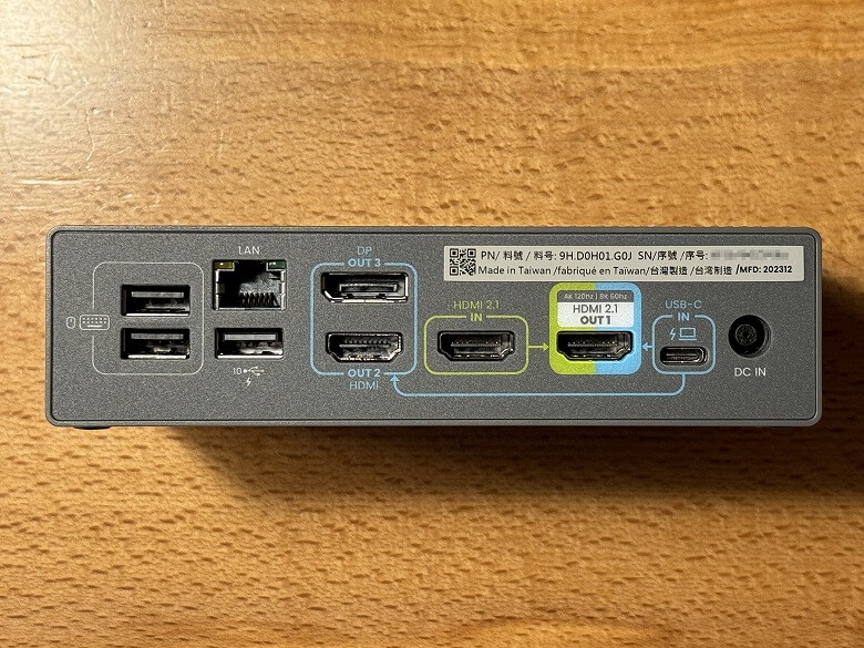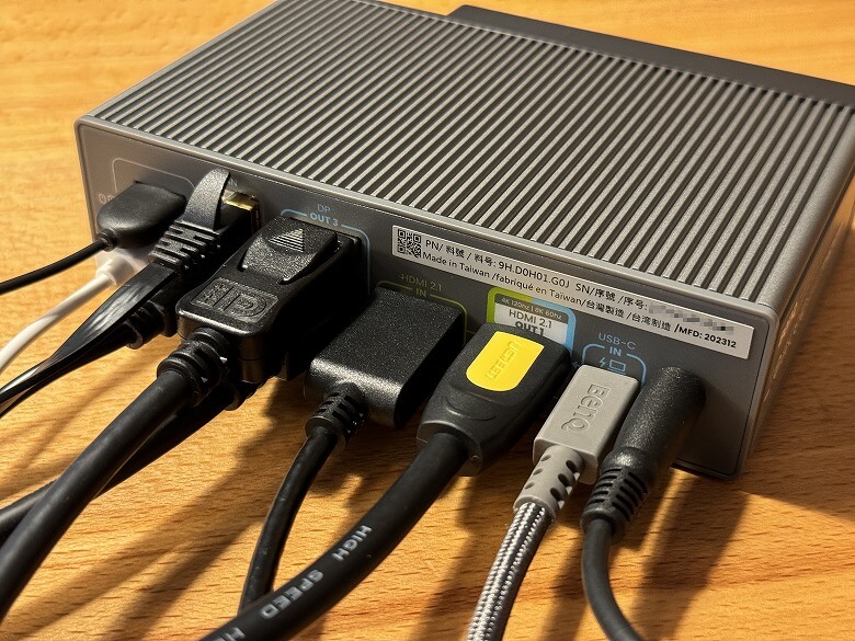 | 映像出力端子 | HDMI 2.1 (OUT 1) (映像入力:USB Type-C)最大3840x2160 60Hz (映像入力:HDMI 2.1 )最大7680×4320 60Hz または 3840x2160 120Hz HDMI 2.0 (OUT 2) (映像入力:USB Type-C)最大3840x2160 60Hz DisplayPort 1.2 (OUT 3) (映像入力:USB Type-C)最大3840x2160 60Hz |