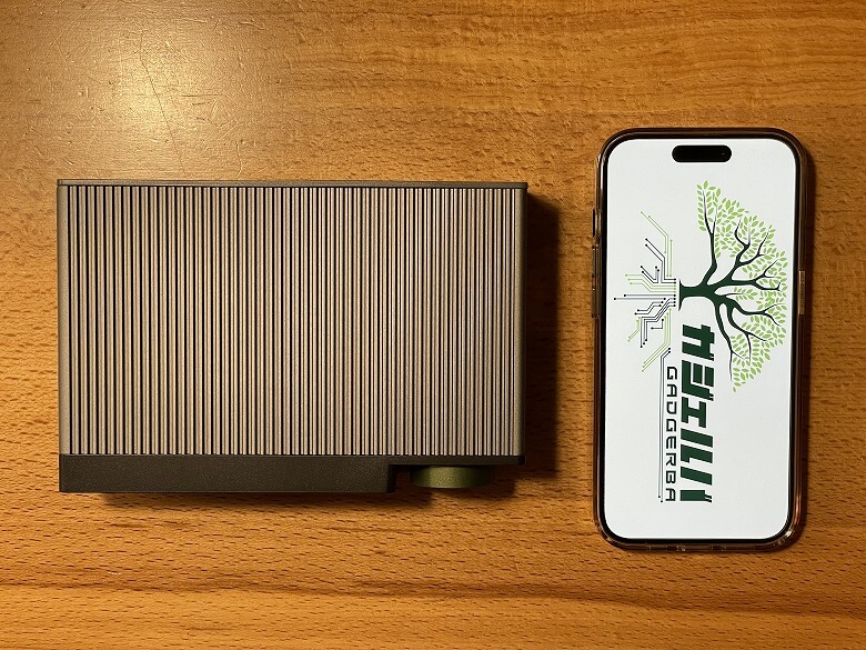 スマホ(iPhone 15 Pro)と比較するとこんな感じのサイズ感。