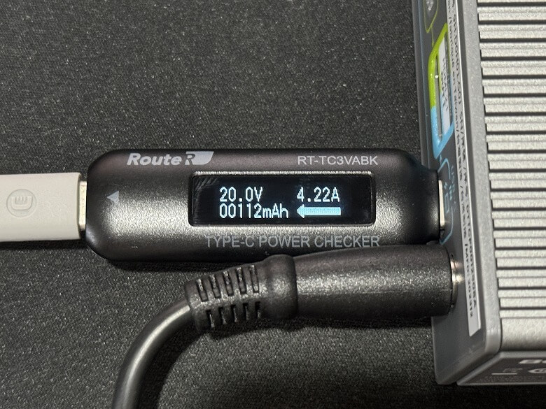 - ノートPC(PD 100W):20.0V × 4.22A = 約84.40W