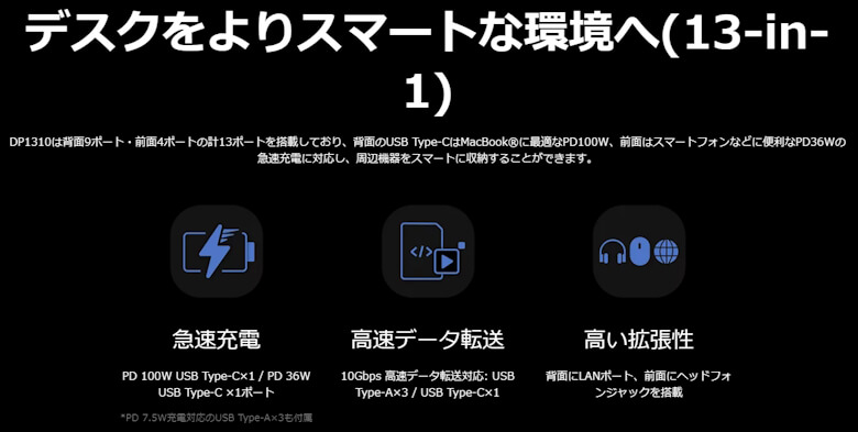 「BenQ beCreatus DP1310」は、究極のデスク環境をオールインワンで実現できる13-in-1ドッキングステーションです。