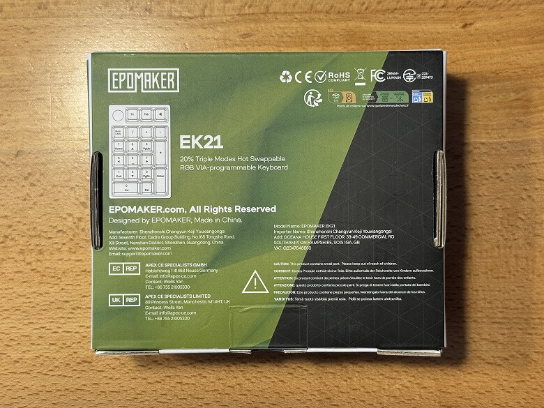The outer box of the “Epomaker EK21” features a mysterious design based on green tones.