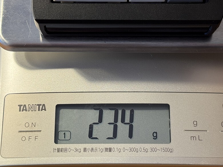 The weight was 234 g.