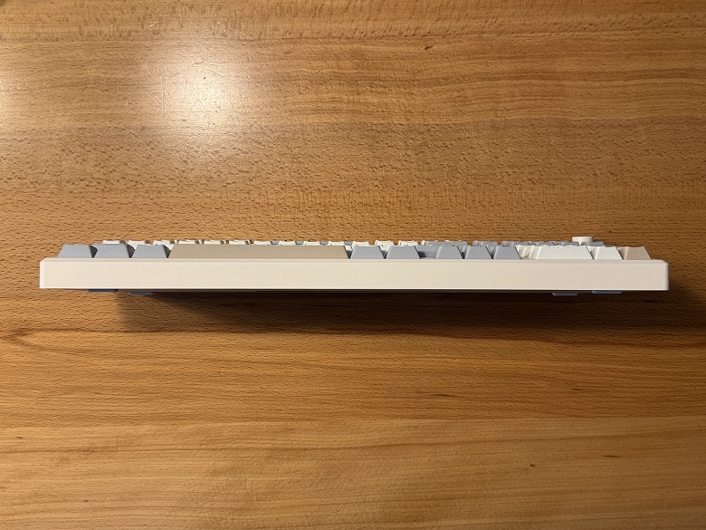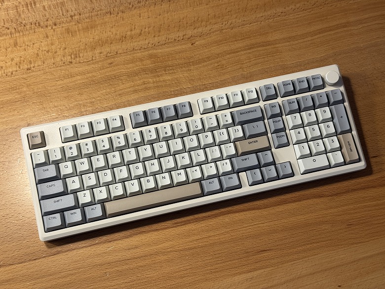 The appearance of the “Epomaker Galaxy100 QMK/VIA” features a retro design with a white base and accent colors of brown and gray.