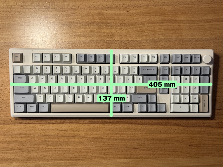 The size of the “Epomaker Galaxy100 QMK/VIA” is 137 × 405 mm.