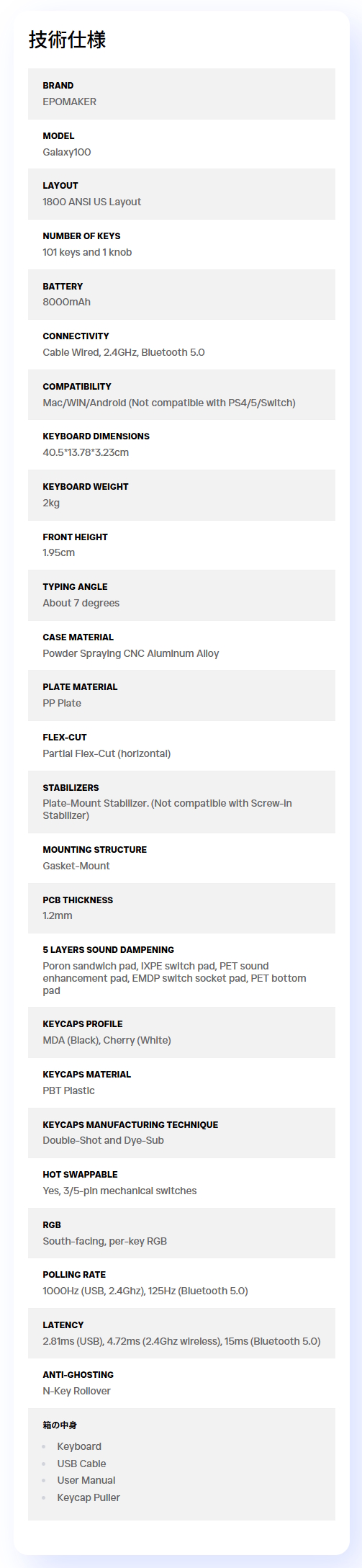What’s Included with the Epomaker Galaxy100 QMK/VIA