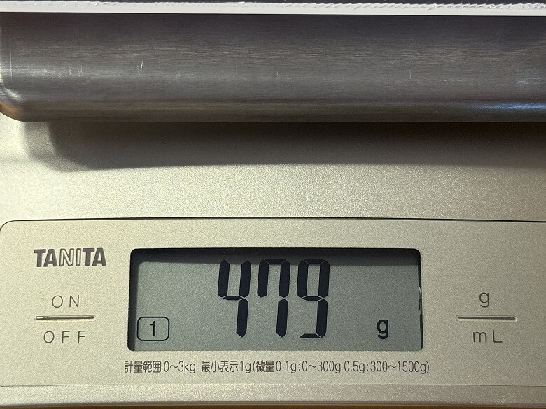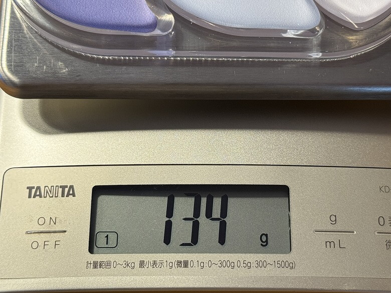 重さはキーボード用リストレストが479 g、マウス用リストレストが134 gでした。