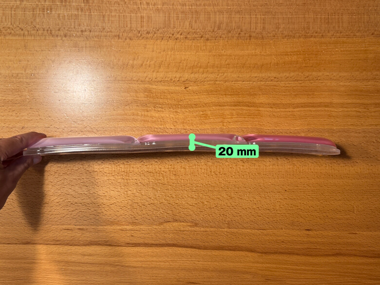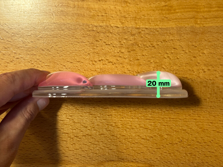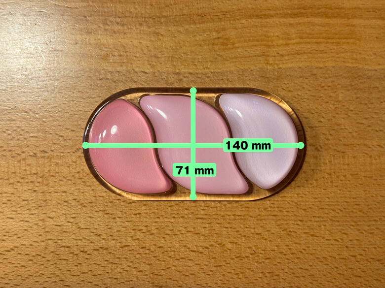 マウス用リストレストのサイズは71 × 140 × 20 mmでした。