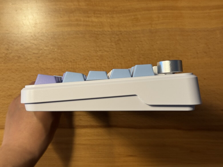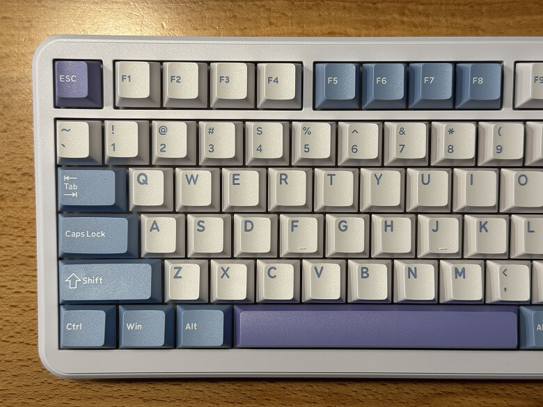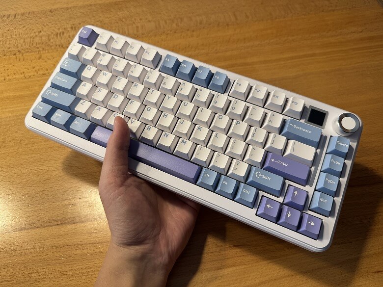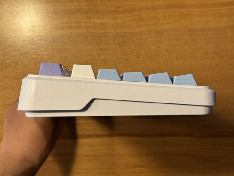 「Epomaker Cypher 81」の外観は、白を基調とし青や紫色をアクセントカラーにしたクールなデザインです。