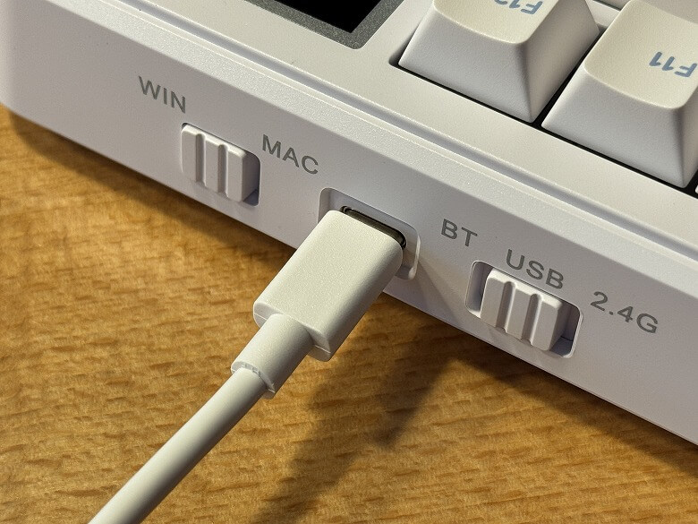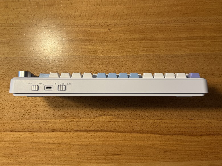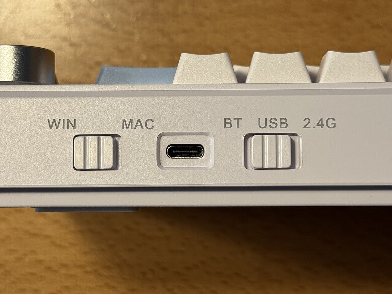 背面右側にはMac/Win切替スイッチ、電源スイッチ、USB Type-Cポートがあります。