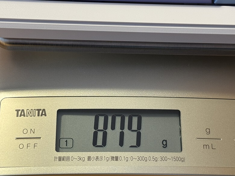 重さは879 gでした。
