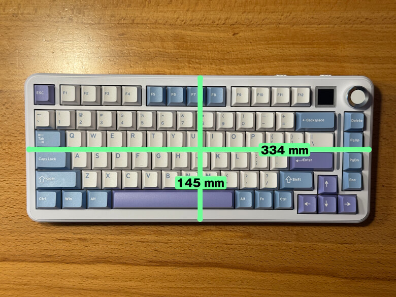 「Epomaker Cypher 81」のサイズは145 × 334 mmです。