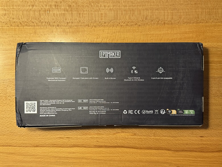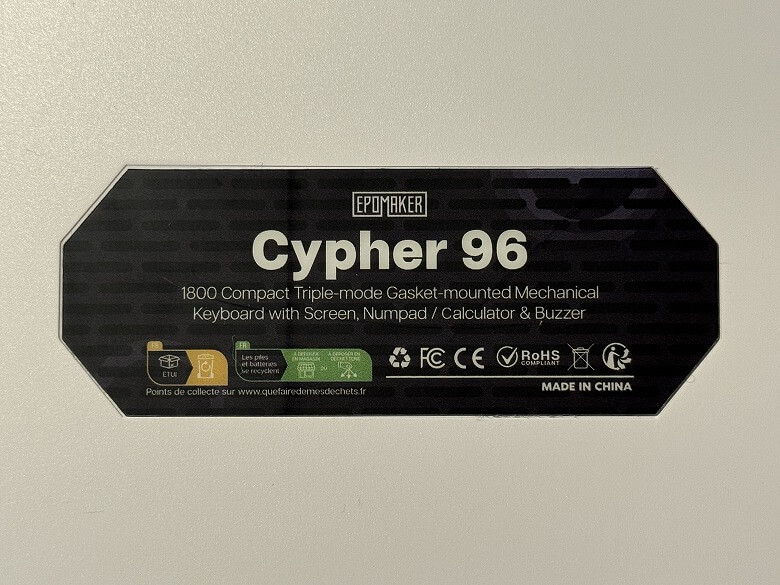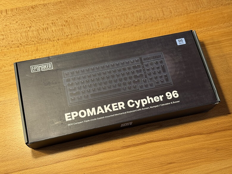 「Epomaker Cypher 96」の外箱は、黒を基調としたシンプルなデザインです。