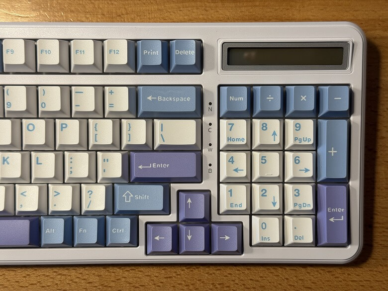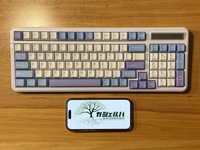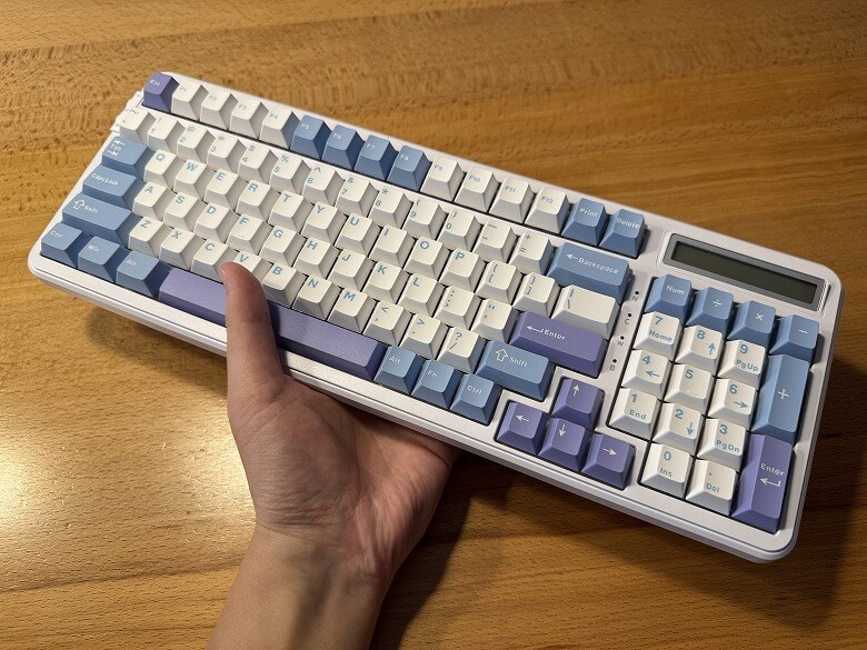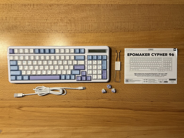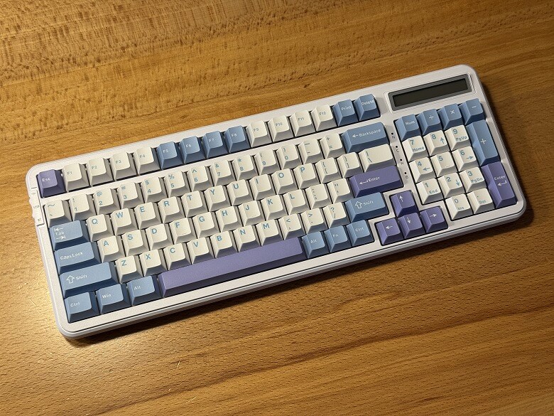 「Epomaker Cypher 96」の外観は、白を基調とし青や紫色をアクセントカラーにしたクールなデザインです。