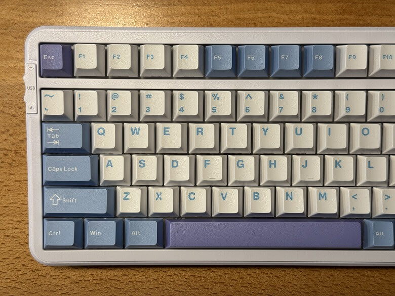 1800 ANSI USレイアウトを採用し、コンパクトさと操作性を両立。おしゃれで爽やかなデザインに加え、カスタマイズ性や心地よい打鍵感も備わっています。