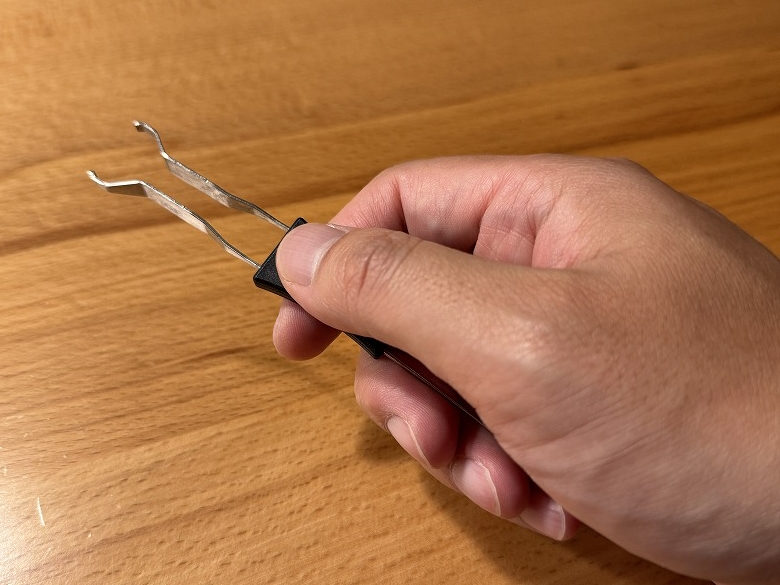 ツールは片方がキーキャッププラー、もう片方がキースイッチプラーになっています。