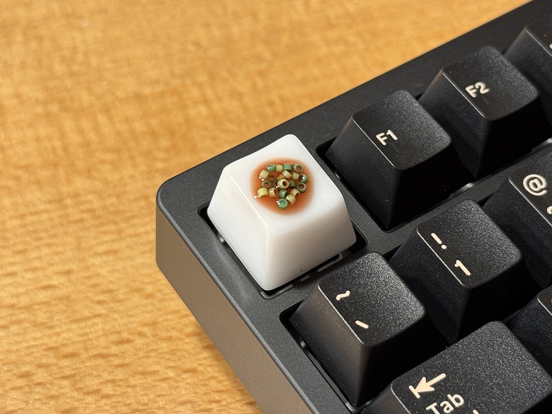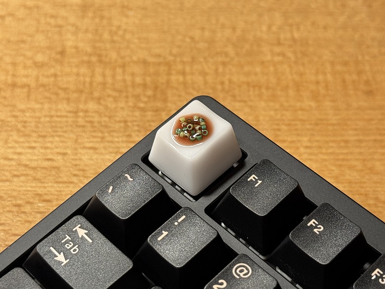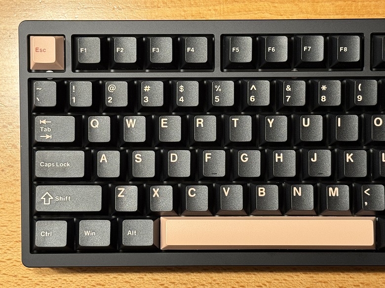 付属の黒いキーキャップに交換すると、色が統一されて引き締まった印象になります。