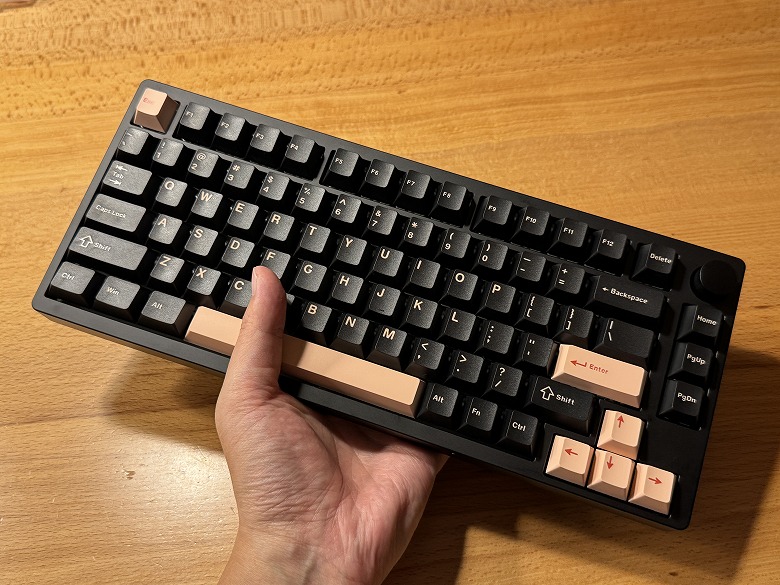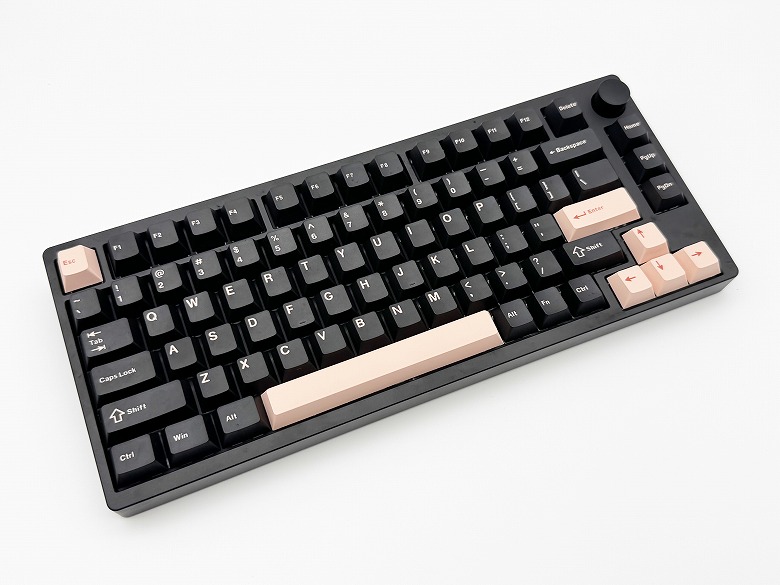 「Epomaker P75」の外観は、黒基調でアクセントカラーにピンクを採用したクールなデザインです。