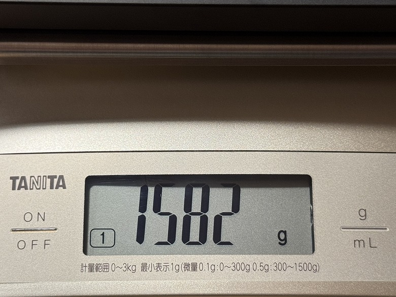 重さは1582 gでした。