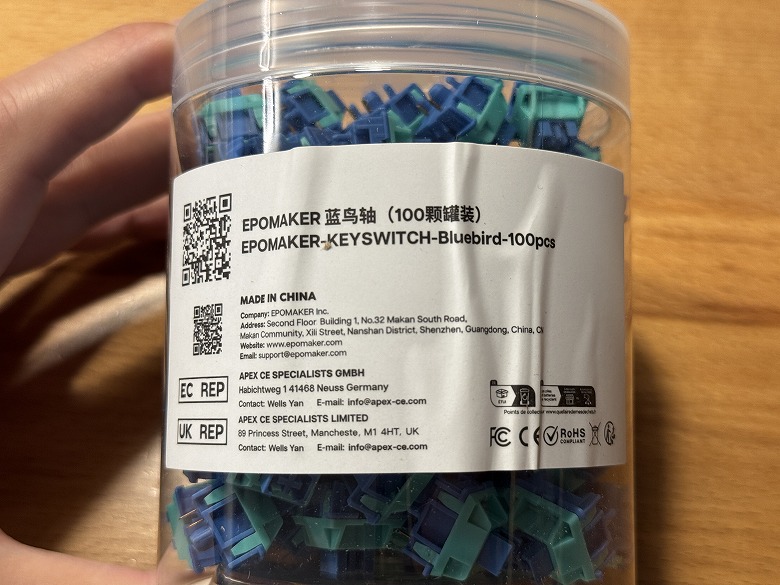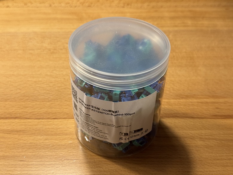 容器の中には100個のキースイッチが入っています。