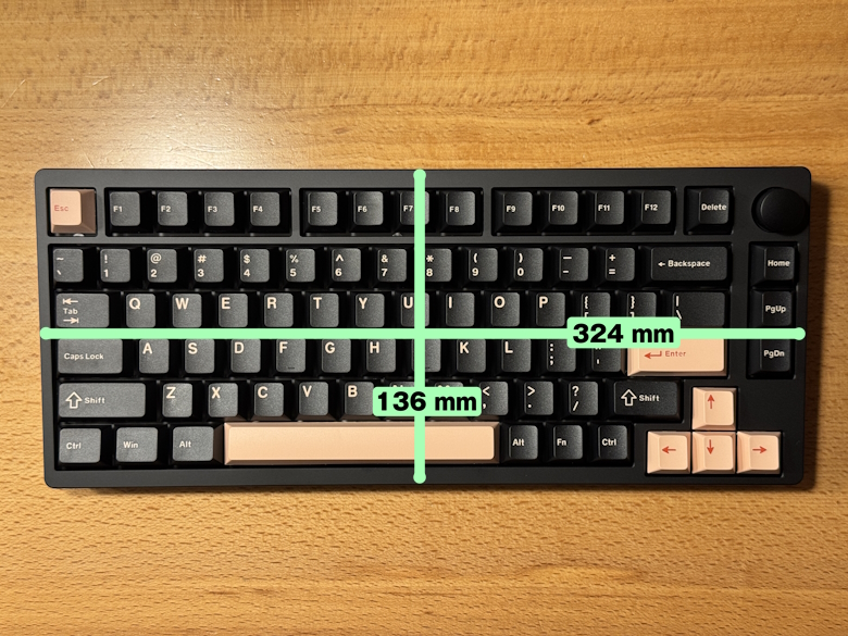 「Epomaker P75」のサイズは136 × 324 mmです。