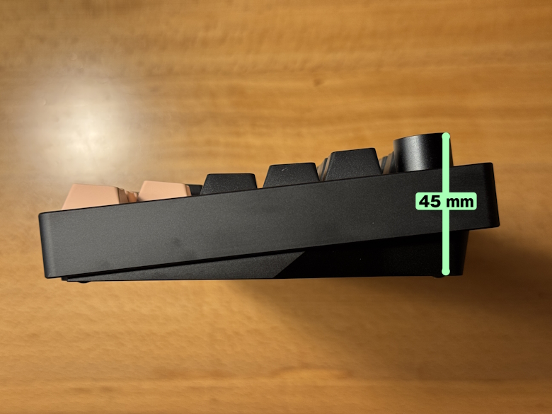 アルミニウム製の本体は剛性に優れ、ダブルショットPBTキーキャップを採用することで全体的に高いビルドクオリティに仕上がっています。