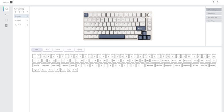 ソフトウェアではキーマップ変更などのカスタマイズができます。