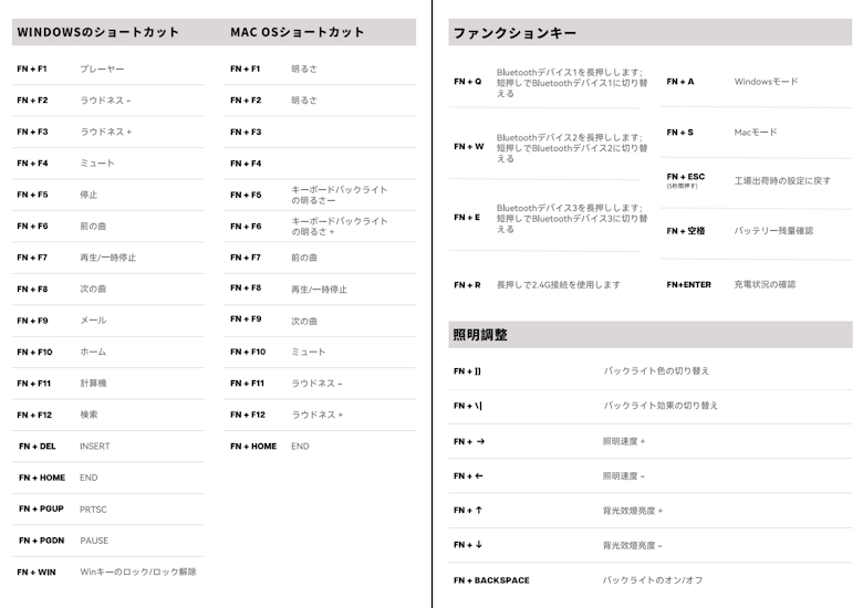 Fnキーとの組み合わせ一覧表は以下をご参考ください。