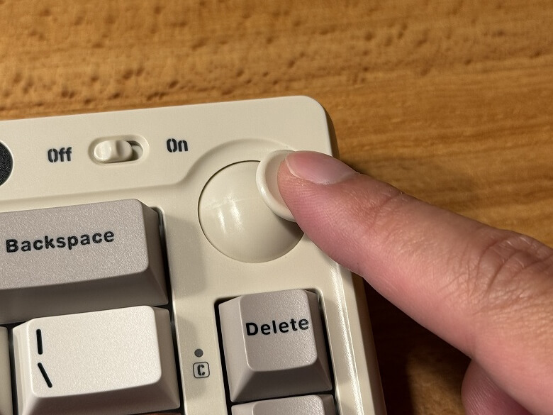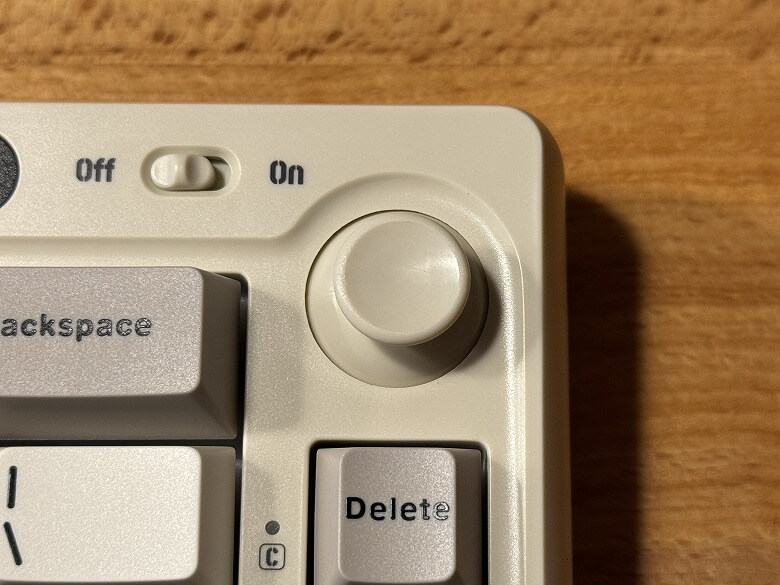 電源スイッチの右下にはボリューム調整やマウスとしても使えるジョイスティックがあります。