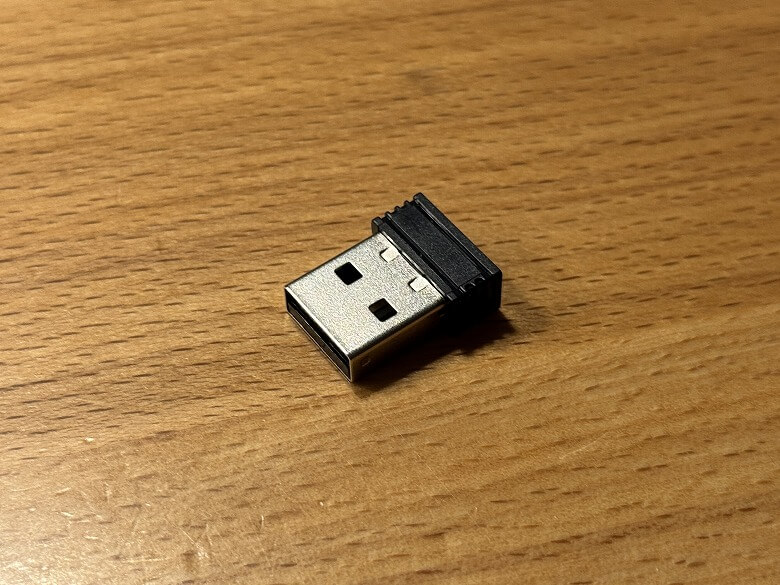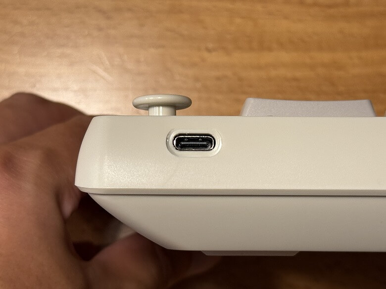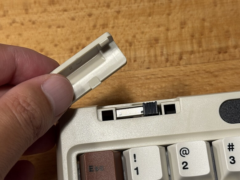 左上にあるカバーを取り外すとUSB Type-Cポートがあり、2.4GHz接続用のレシーバーが収納されています。