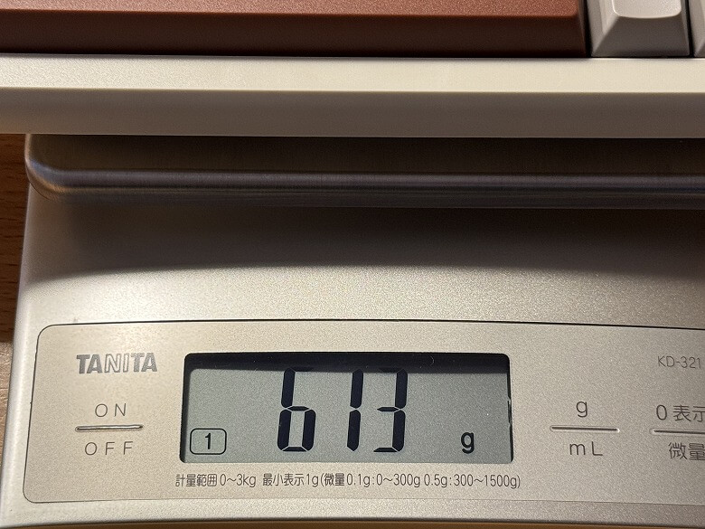 重さはそれぞれキーボード本体が613 g、ミニディスプレイは16 gでした。