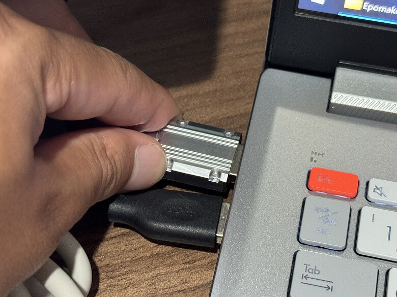 ミニディスプレイはキーボードの背面にUSB Type-Cで接続します。