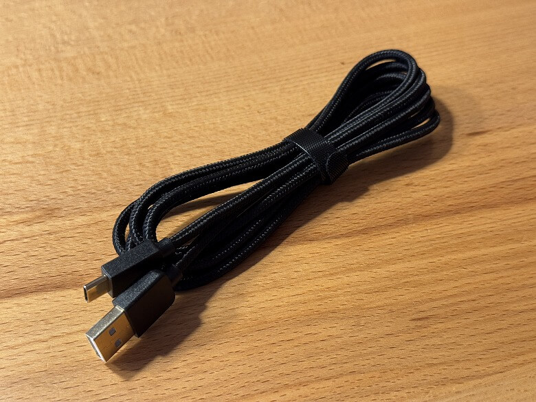 USB Type-A to Cケーブルはナイロン被覆で丈夫な造りをしています。