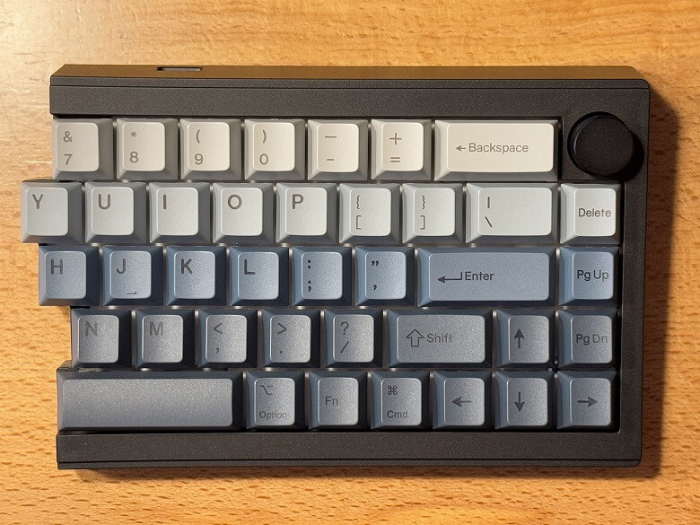「Epomaker Split65」の外観は、黒基調でグラーデーションがクールなデザインです。