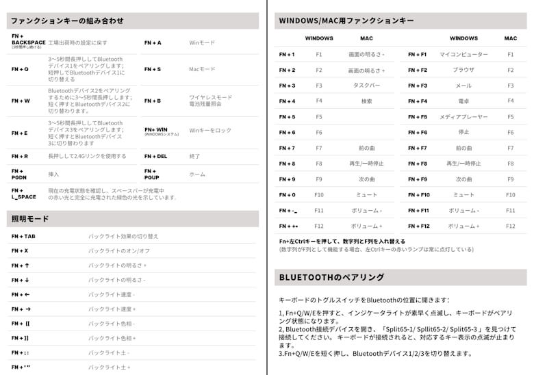 Fnキーとの組み合わせ一覧表は以下をご参考ください。