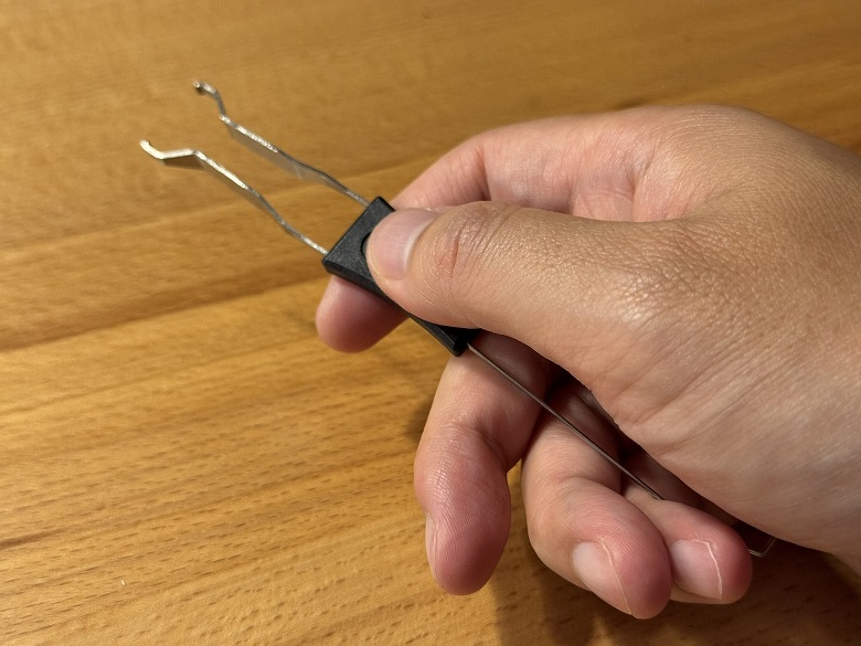 ツールは片方がキーキャッププラー、もう片方がキースイッチプラーになっています。