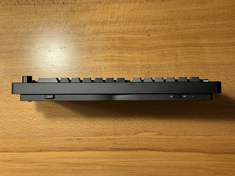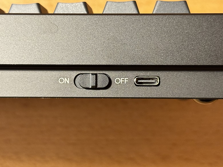背面左側にはUSBレシーバー、右側には電源スイッチとUSB Type-Cポートがあります。