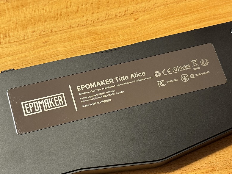中央にはEpomakerのロゴや仕様が刻印されています。