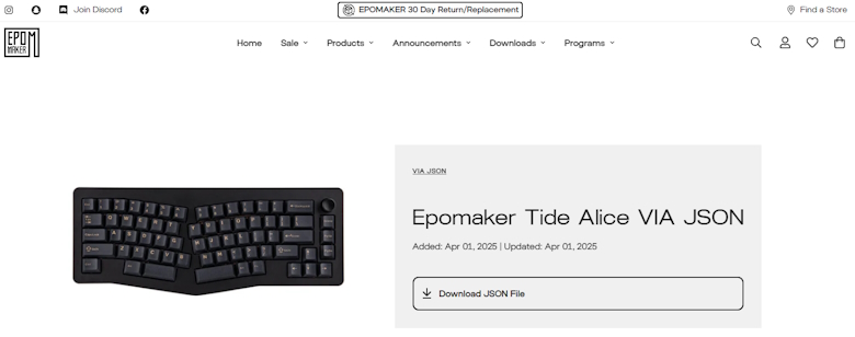 専用のVIA JSONファイルを公式サイトからダウンロードできます。
