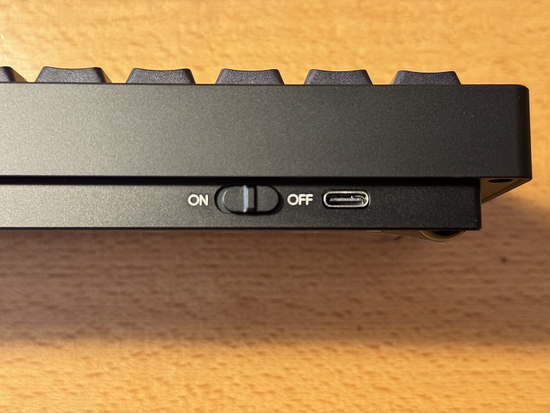 背面左側にはUSBレシーバー、右側にはUSB Type-Cポートと電源スイッチがあります。