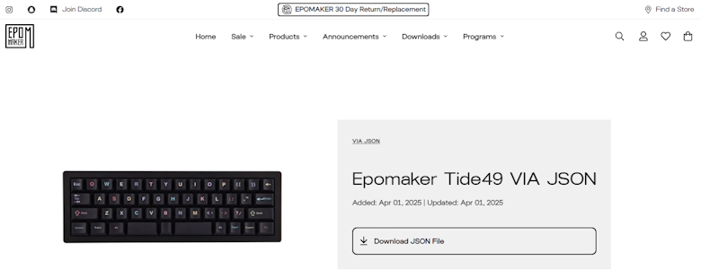 専用のVIA JSONファイルを公式サイトからダウンロードできます。