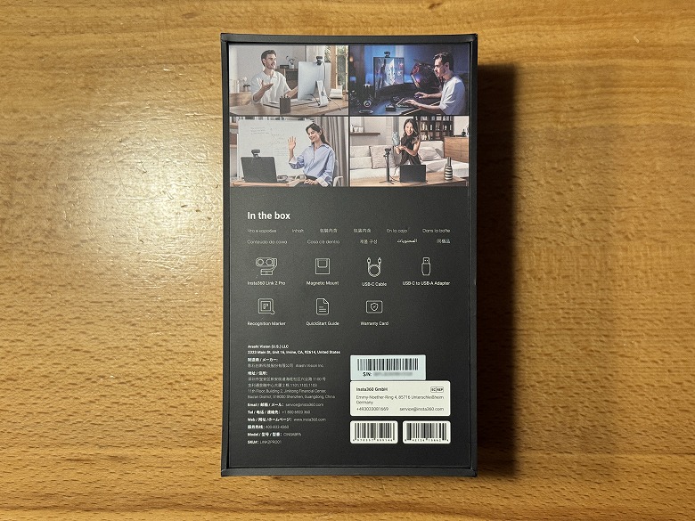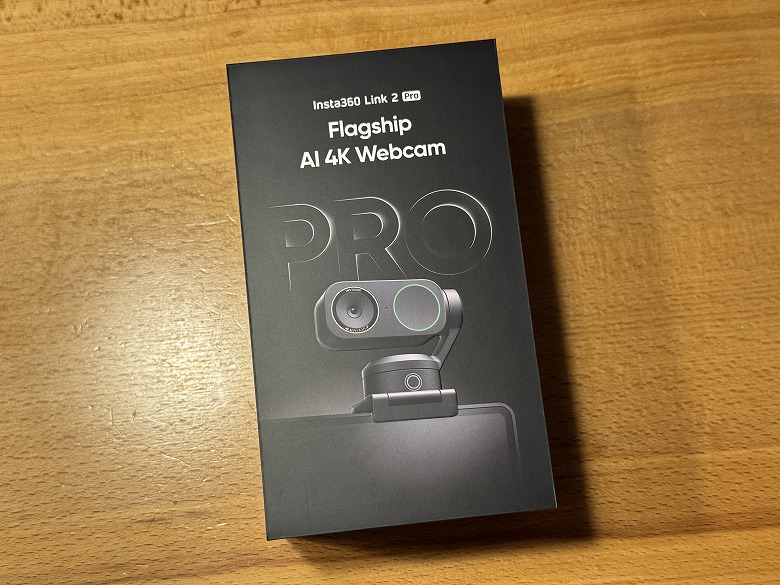 「Insta360 Link 2 Pro」の外箱は、黒基調でクールなデザインです。