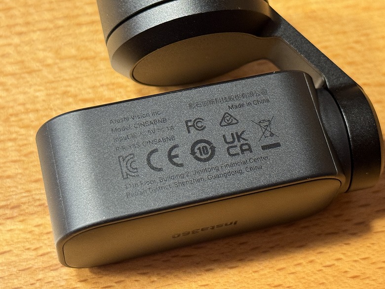背面にはInsta360のロゴが刻印されています。
