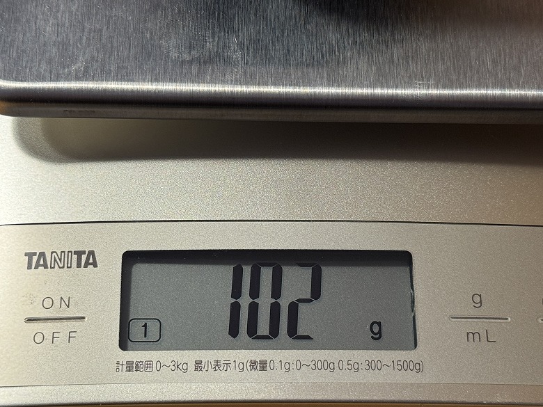 重さは102 gでした。