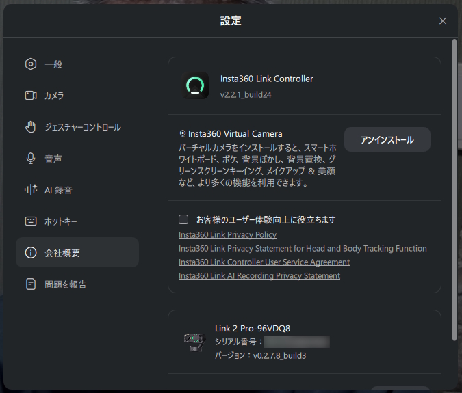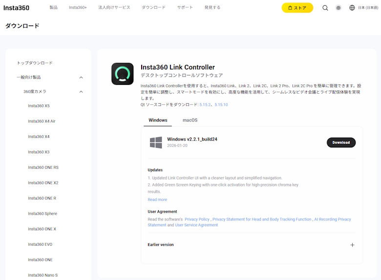 専用ソフト「Insta360 Link Controller」を公式サイトからダウンロードして使います。