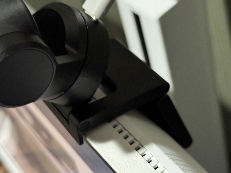 クリップ上部のマグネットで貼り付けて固定することができ、モニターの上部に引っ掛けるように乗せて使えます。